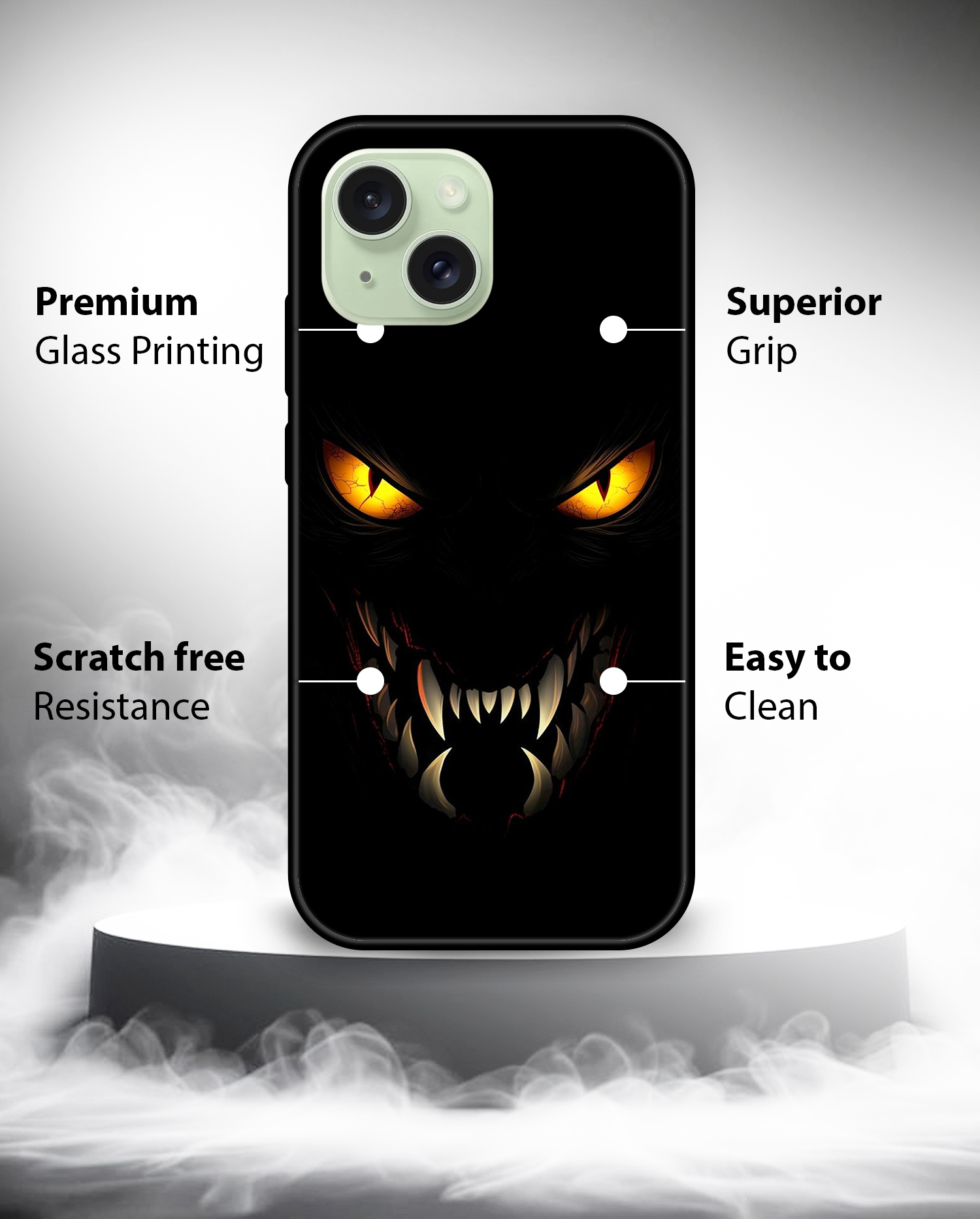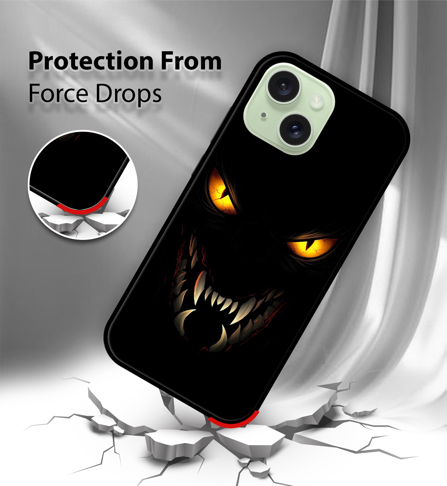 Upgrade your iPhone 15 with the Premium Dark Monster Printed Back Cover, designed to deliver the perfect balance of style, protection, and comfort. Crafted from high-quality, durable materials, this case protects your phone from everyday drops, scratches, and impacts while maintaining a slim and lightweight feel.
