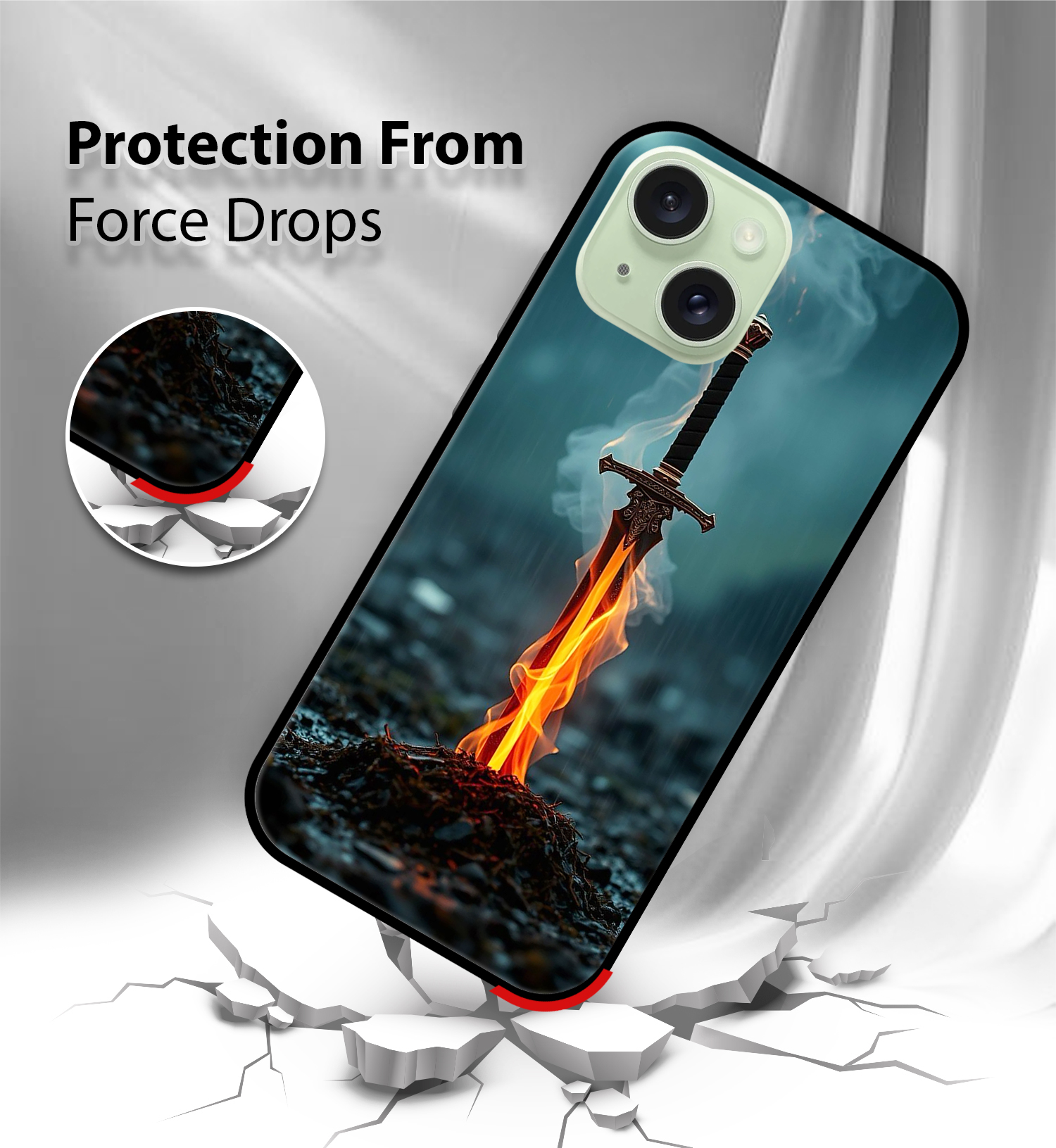 Upgrade your iPhone 15 with the Premium Flaming Sword Printed Back Cover, designed to deliver the perfect balance of style, protection, and comfort. Crafted from high-quality, durable materials, this case protects your phone from everyday drops, scratches, and impacts while maintaining a slim and lightweight feel.