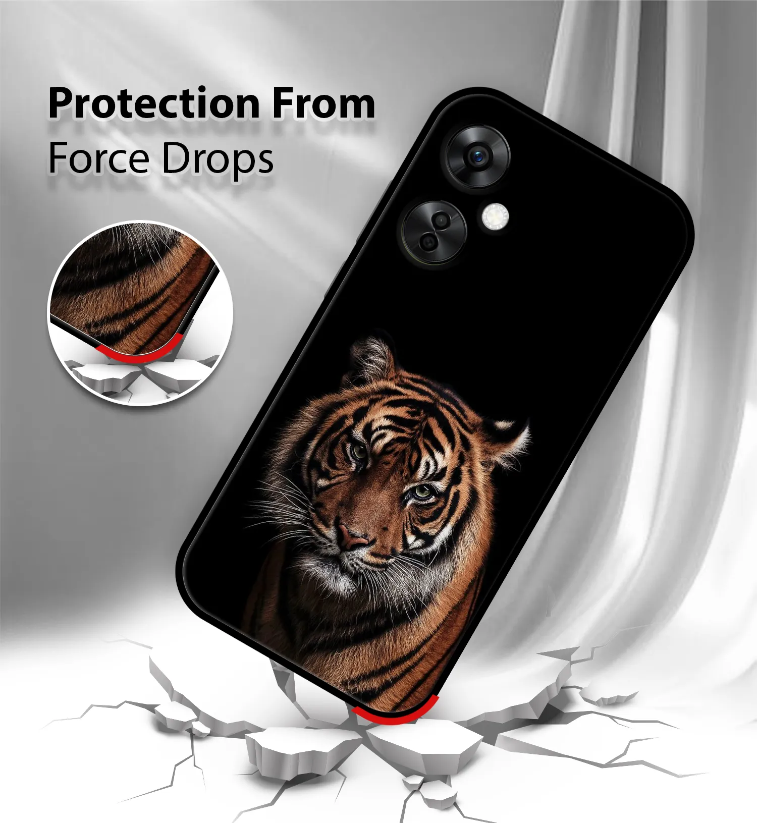 Upgrade your OnePlus Nord CE 3 Lite with the Premium Tiger Design Printed Back Cover, designed to deliver the perfect Tiger Design of style, protection, and comfort. Crafted from high-quality, durable materials, this case protects your phone from everyday drops, scratches, and impacts while maintaining a slim and lightweight feel.